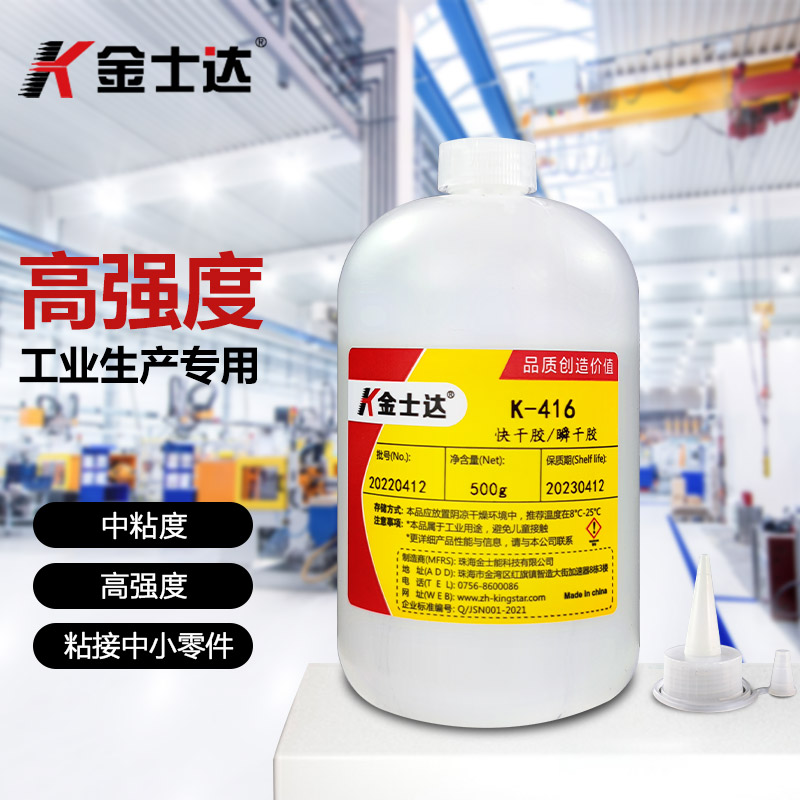 5、因 K-430胶水属聚合反应,有时会在瓶子或贴合部位外围产生白化现象,用金士达解胶剂K-768擦拭干净即可,也可以用金士达K-7452加速剂,可以避免白雾产生。
